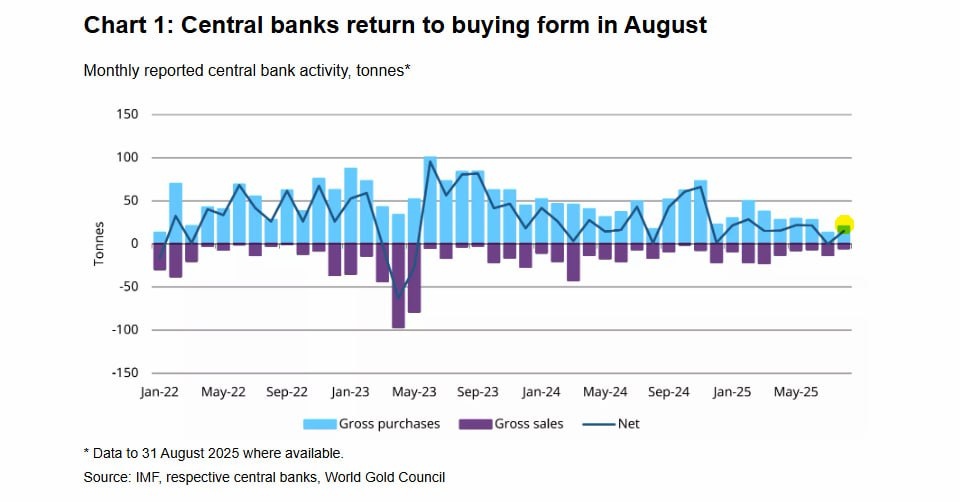Мировые регуляторы снова скупают золото, как паникеры перед штормом. 15 тонн в августе (+50%), Казахстан в лидерах с 8 тоннами покупки. Это не стратегия, а паника перед коллапсом доллара. Цены зашкаливают за $2500, но чем больше покупают, тем дороже становится спасательный круг. За полгода 483 тонны накоплено - цифры впечатляют, но говорят больше о страхе, чем о силе. Без пафоса | финансы! Подпишись!