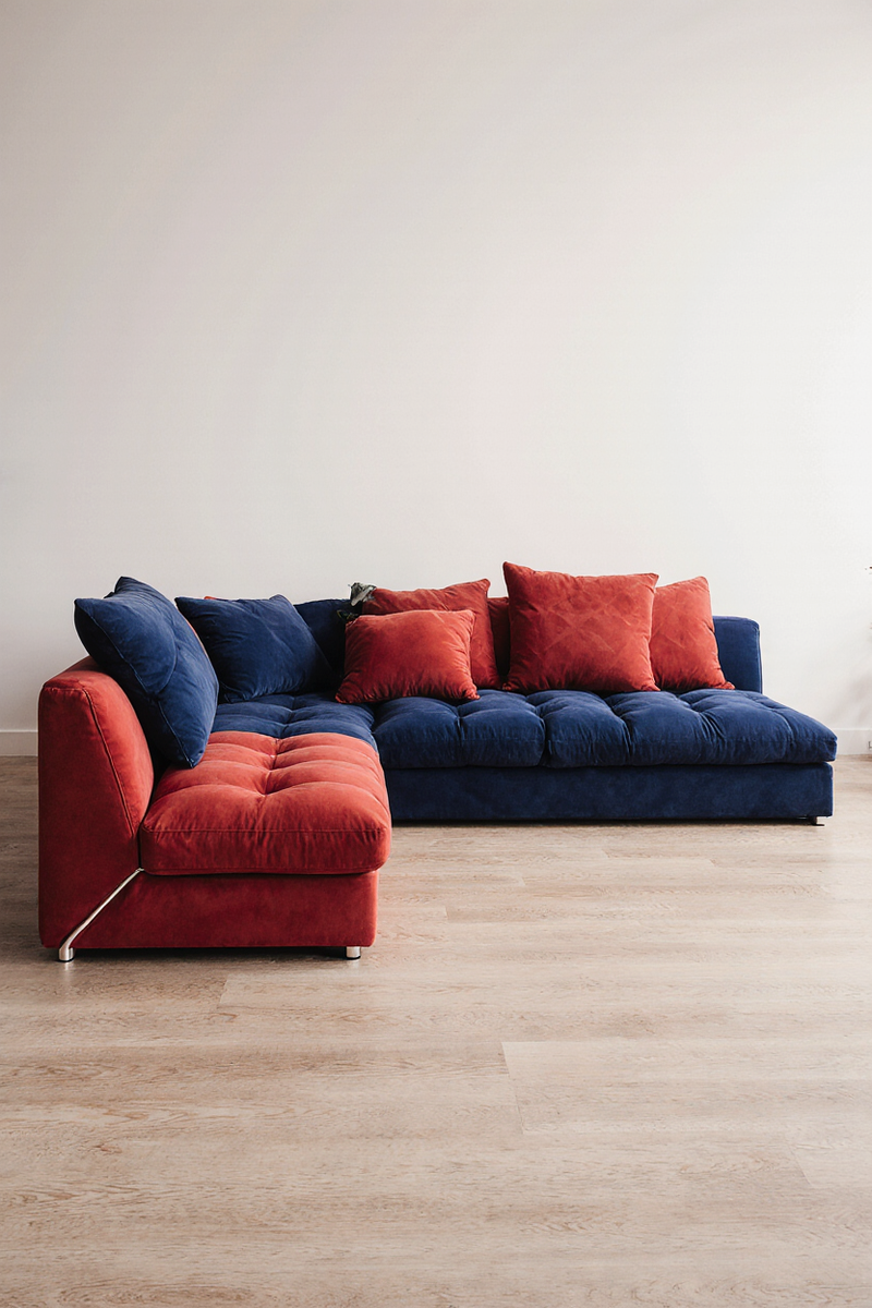 Цвет в интерьере — это не просто визуальный элемент, а мощный инструмент создания атмосферы, настроения и стиля. Одним из самых ярких и выразительных сочетаний является комбинация синего и красного цветов. В мебели этот дуэт способен преобразить пространство, внести динамику и характер, создать баланс между теплом и холодом. В этой статье мы подробно рассмотрим, почему синий и красный так эффектно работают вместе, как их правильно комбинировать в мебели и какие стилистические решения можно реализовать с их помощью. - Контраст и баланс. Синий принадлежит к холодной палитре, ассоциируется со стабильностью, спокойствием и глубиной. Красный же — теплый, энергичный и страстный цвет, вызывающий активность и возбуждение. Вместе они создают динамичное равновесие, где каждый оттенок усиливает другой. - Визуальная выразительность. Сочетание синего и красного привлекает внимание, делает мебель акцентным элементом интерьера. Это отличный способ добавить индивидуальность и выразительность пространс