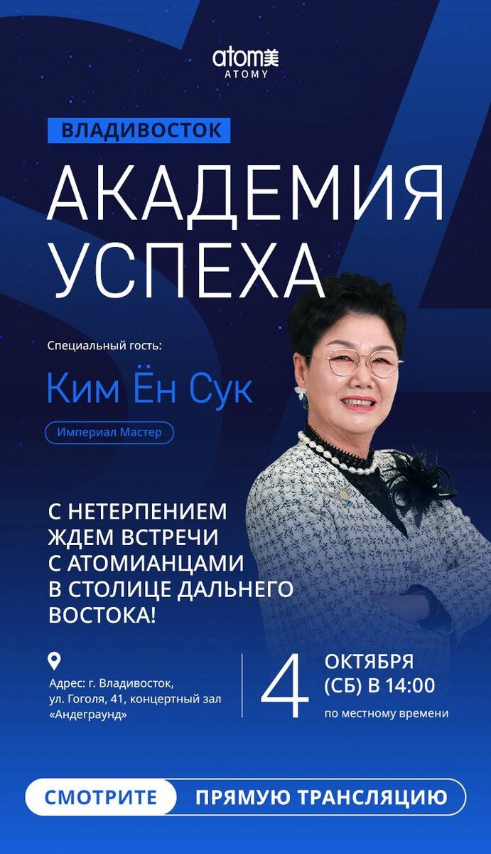 Приглашаем вас присоединиться к прямому эфиру Академии Успеха во Владивостоке завтра в 14:00 (по местному времени)✨