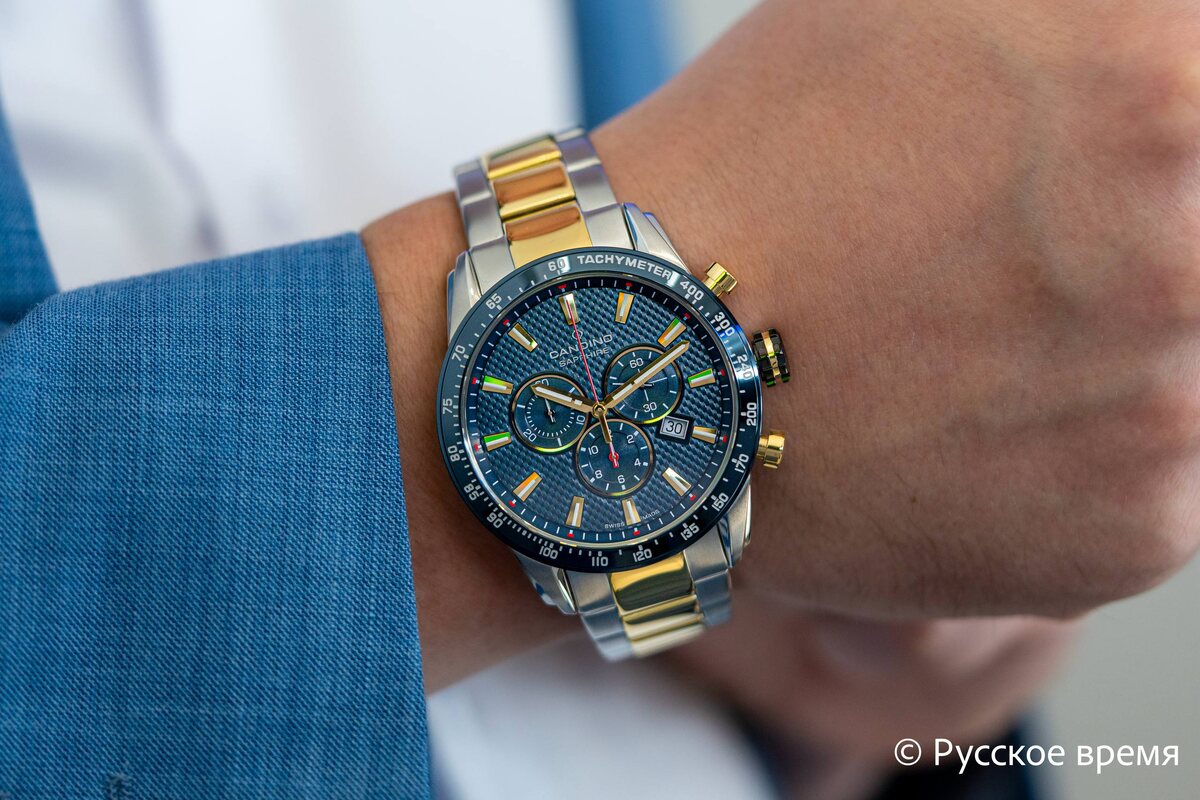 Респектабельный мужской хронограф от Candino. Коллекция Gents Sport. Кварцевый механизм RONDA 5040D. Синий циферблат с узором стиля «Плетеная корзина», тремя субдисками, апертурой даты на «4 часах». Золотистые накладные индексы, стрелки люминесцентным составом. Сапфировое стекло, устойчивое к появлению царапин. Синий безель с тахиметрической шкалой. 44-мм корпус и интегрированный браслет из нержавеющей стали с частичным PVD-покрытия цвета желтого золота. «Маркировка Swiss Made». Влагозащита 10 АТМ. https://russkoe-vremya.ru/magazin/product/candino-c4748-2?ysclid=mgb068pr32863123907