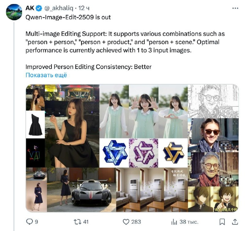 📸 Новый ИИ-фотошоп: теперь еще круче! 🚀 Qwen добавил крутые фишки в свой фоторедактор. Теперь он умеет соединять несколько фото сразу. Это открывает новые возможности для творчества. 💡 Еще одна супер-функция: ИИ запоминает лица. Благодаря этому можно менять ракурсы персонажей на снимках. Это очень удобно для создания уникальных портретов. ✨ Удаление лишних объектов стало точнее. Также легко менять цвета, шрифты и текстуры. Все это делается всего за минуту. ИИ понимает русский язык, что делает работу еще проще. 💬 Какие новые возможности ИИ вы хотели бы попробовать? #AI #технологии #новости
