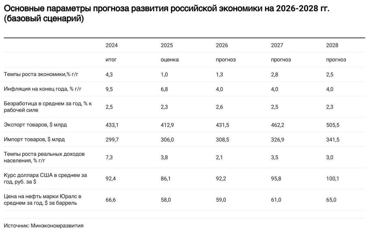 По прогнозам Министерства экономического развития, в течение двух лет подряд российская экономика будет расти темпами менее 2%. Доллар вернется к отметке 100 рублей только к 2028 году.