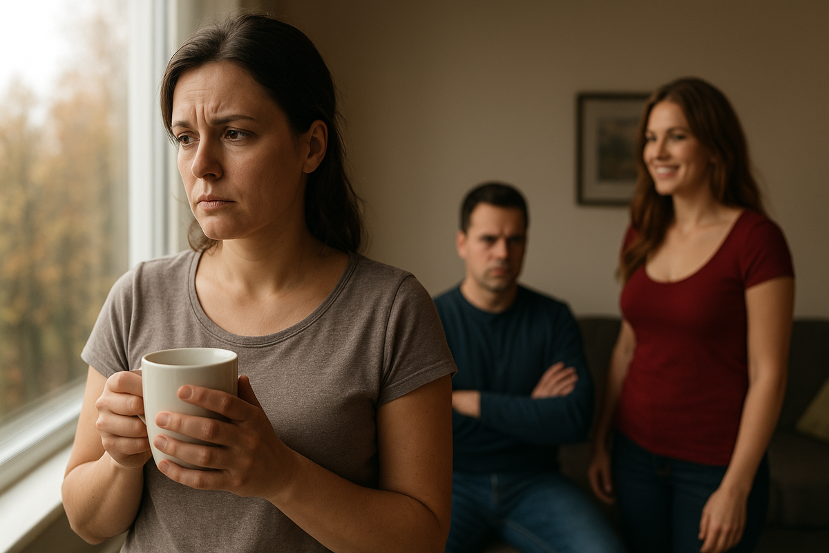 На следующий день Игорь задержался на работе. Катя оставалась дома с ребёнком и пыталась не думать о том, что видела сквозь окно: как он разговаривал с соседкой Ольгой — яркой, уверенной женщиной с пышной фигурой. Его улыбка к ней была такой теплой и внимательной, какой она давно не видела от него к себе.