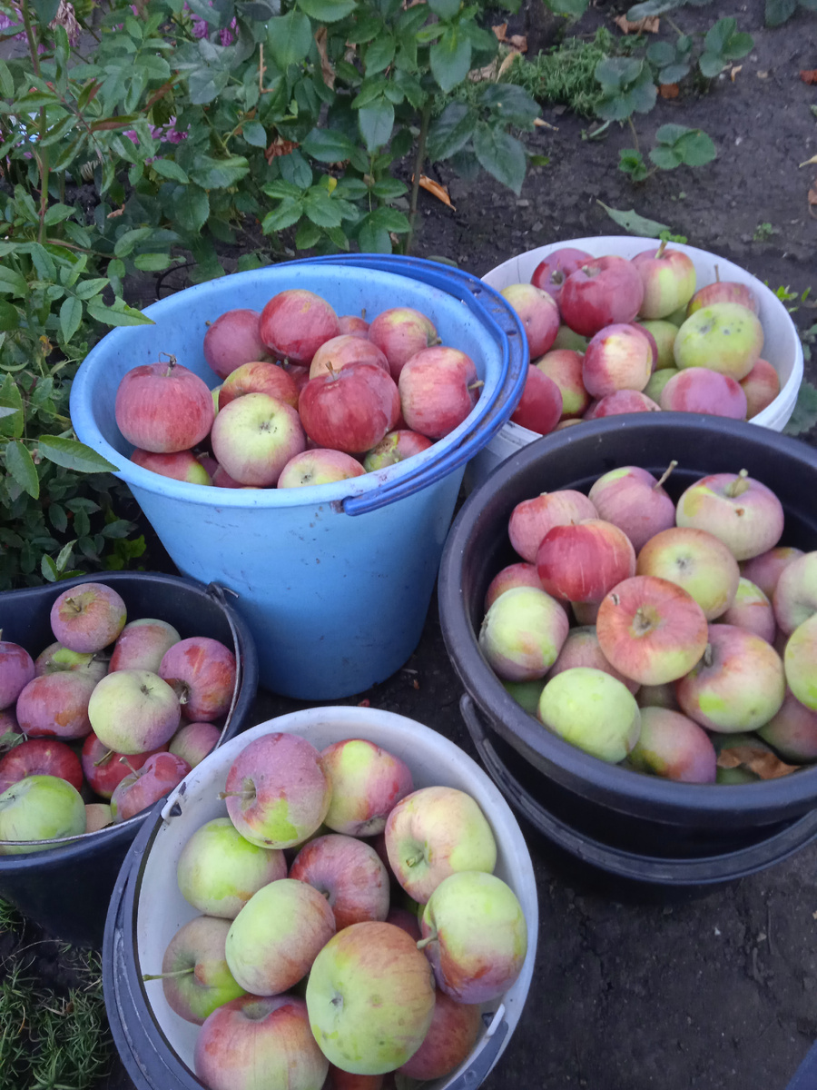 Продолжу рассказывать о своих яблонях в саду, которые порадовали в этом году отличным урожаем. Собрав Беркутовку мы перешли к сбору яблок с зимней яблони Кортланд. Это яблоко мне напоминает детство. А все потому, что папа нам часто привозил из деревни от бабушки эти яблоки. Среди Антоновки, Аниса и Пепина этот сорт мне нравился больше всего. Яблоко сочное, сладкое, хрустящее. Чем-то похоже на Беркутовку. Сорт очень ароматный и вкусный. Именно поэтому, сажая свой сад, мы отдали предпочтение этому зимнему сорту. Сорт тоже не новый, многие уже давно его выращивают и знают эти яблоки. При этом он не утратил свою популярность. Моя яблоня была посажена в 2008 году, но никак не хотела плодоносить. Однажды в журнале «Моя прекрасная дача» я прочитала статью о том, как заставить яблоню давать урожай. Автор писал, что нужно в Петров день между утренней и обеденной службой ударить дерево топором 12 раз. Дачник утверждал, что метод действенный. Я так кардинально не готова была разговаривать с ябл