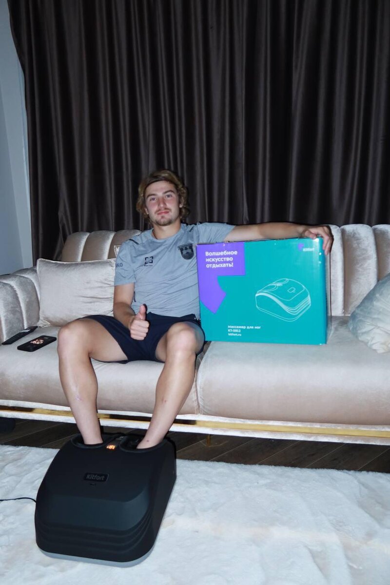ЗАРЯД БОДРОСТИ ⚡️ Наш лучший игрок августа готовится к очередной тренировке вместе со своим призом от Kitfort. Уже завтра команда отправится в Москву Хотите почувствовать себя на месте Максима вместе с таким массажёром? Прямо сейчас есть шанс взять его со скидкой в 15% по промокоду БАЛТИКА. Он действует до 12 октября. Приобрести массажёр можно по ссылке.