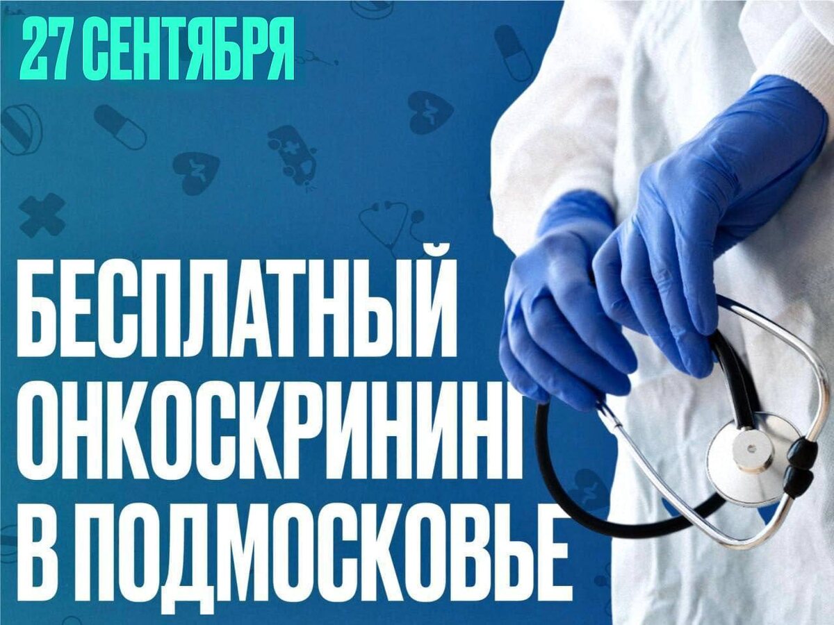 Бесплатный онкоскрининг — уже в эту субботу 🏥 ↪️ 27 сентября в Центрах амбулаторной онкологической помощи Подмосковья пройдёт День открытых дверей. Каждый желающий старше 18 лет сможет получить консультацию врача-онколога и пройти диагностику. Среди доступных исследований: 🔴 маммография; 🔴 КТ или рентген органов грудной клетки; 🔴 ПСА-тест для мужчин. 🤩 27 сентября с 9:00 до 14:00. 🤩 Адреса учреждений можно найти здесь. Рекомендуется предварительно записаться. Не забудьте взять с собой паспорт, полис ОМС, СНИЛС и результаты предыдущих обследований. #здоровьещёлково