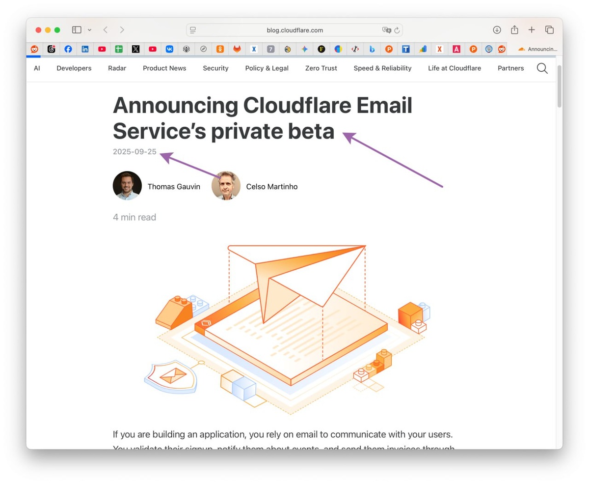 Cloudflare решила добавить очередной сервис - теперь у неё появился собственный инструмент для отправки email. Всё, как любят разработчики :) - интеграция с DNS на автопилоте, SPF, DKIM и DMARC прописываются сами, чтобы ваши письма не улетали в спам и доходили до получателей с минимальной задержкой. При этом можно отправлять письма хоть через REST, хоть через SMTP, никаких новых велосипедов изобретать не надо... Для любителей автоматизации всё тоже есть. Хотите парсить входящие письма, категоризировать их с помощью ИИ или запускать автоматические сценарии - пожалуйста. Правда, халявы тут не будет: отправка email будет работать только при оформленной подписке на Workers и тарификация будет идти по количеству отправленных сообщений. В общем - строят экосистему, молодцы. Не знаю, можно ли будет через них слать b2b cold emails )) Русский ИТ бизнес