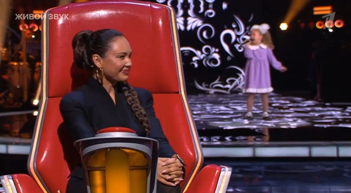 Какая артистичная и эмоциональная девчуля. Моментально развернула к себе Билана - на ее обаяние нельзя не среагировать, она им пробивает даже через спинку кресла.