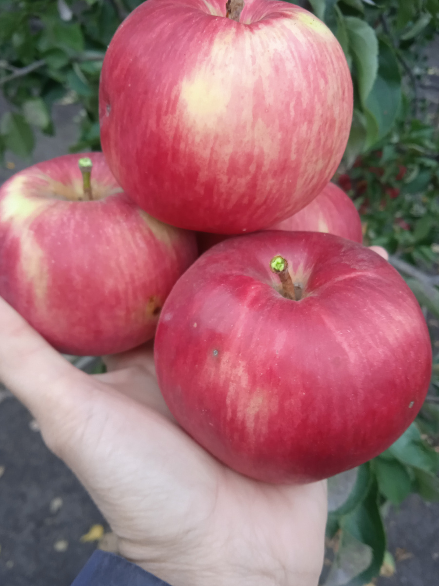 Есть у меня в саду две яблони, которыми я горжусь. Я все потому, что яблоки на них очень крупные, сладкие и плодоносят каждый год. Сорт яблок осенний и называется Жигулевское. Яблоки этого сорта очень крупные, красивые. Они не очень сочные, но и не сухие. Сорт очень сладкий. Одну яблоню папа посадил в 2008 году, и она у нас после снежной зимы сломалась. Мы думали, что это конец. Но яблоня оказалась на удивление стойкая. Она и сейчас у нас невысокая, но ежегодно радует урожаем крупных сладких ягод. А вот вторую яблоню нам подарили. Саженец яблони привезли продавать из Макаровского питомника на местном рынке, саженец был очень высокий, это уже была уже 4- х летка. Заказчик специально заказал саженец постарше, чтобы яблоня быстрее вступила в плодоношение. Но за заказом не пришел. Везти назад в питомник такое огромное дерево не было смысла, так как вероятность продать такой огромный саженец невелика, обычно заказывают и покупают саженцы помоложе. Моему отцу продавцы питомника предложили