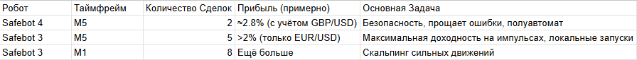 В недавнем видео мы с вами настроили и запустили торгового робота Safebot четвёртого поколения на паре евро-доллар. Он показал себя как надёжный полуавтомат, прощающий ошибки трейдера и демонстрирующий отличный запас прочности. Но что делать, когда рынок демонстрирует сильные, однонаправленные движения, которые так часто пугают большинство алгоритмических систем? Именно в таких ситуациях на сцену выходит Safebot 3 — предыдущее поколение, созданное для совершенно других задач. В этой статье мы сравним результаты работы двух роботов и разберемся, какой из них лучше подходит для ваших торговых целей. Большинство торговых роботов можно разделить на две категории: Именно однонаправленные, безоткатные движения цены являются камнем преткновения для многих роботов, особенно тех, что ориентированы на коррекции. В такие моменты они открывают мало сделок. Однако, существует алгоритм, который позволяет "проскальпировать" такие импульсы, и это, как вы уже догадались, Safebot 3. Давайте посмотрим, к