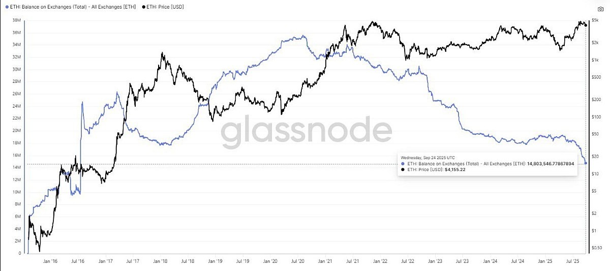 πΌ ΠΠΎΠ»ΠΈΡΠ΅ΡΡΠ²ΠΎ Ethereum Π½Π° ΡΠ΅Π½ΡΡΠ°Π»ΠΈΠ·ΠΎΠ²Π°Π½Π½ΡΡ Π±ΠΈΡΠΆΠ°Ρ ΡΠΏΠ°Π»ΠΎ Π΄ΠΎ ΡΠ°ΠΌΠΎΠ³ΠΎ Π½ΠΈΠ·ΠΊΠΎΠ³ΠΎ ΡΡΠΎΠ²Π½Ρ Ρ 2016 Π³ΠΎΠ΄Π° (ΠΌΠΈΠ½ΠΈΠΌΡΠΌ Π·Π° 9 Π»Π΅Ρ