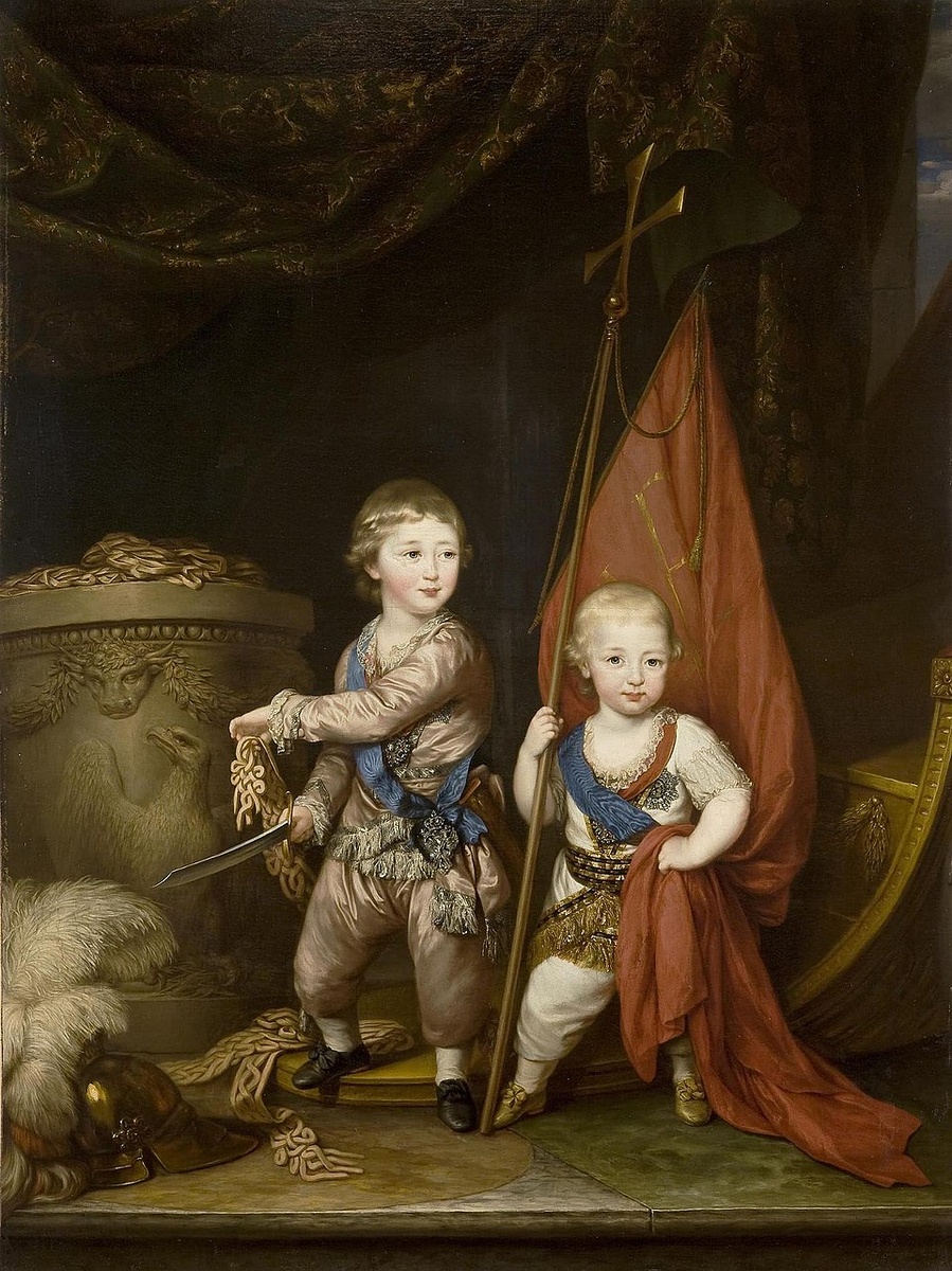 В 1777 году в царской семье Павла I, на свет появляется первенец — сын Александр. Через два года происходит рождение второго сына — Константина. Оба мальчика попали под опеку своей бабушки — Екатерины Великой. Взяв их на воспитание, она готовила их царствовать: Александру — российский трон, Константину — константинопольский престол Византии. Мальчики получили одинаковое образование. Константин внешне и по характеру напоминал своего отца — курносый, не большого роста. Он был вспыльчивый и горяч в гневе. В военном деле, А. В. Суворов отзывался о нем, как о человеке имеющим полководческий талант. Александр был красавцем. Судьба уготовила ему быть правителем великой страны, любимцем женщин и победителем самого Наполеона. Но все это он получил благодаря заговорщикам, которые убили его отца Павла. «Брат мой может идти царствовать, коли ему нравится. Но, если бы престол должен был перейти ко мне, я отказался бы!» - слова Константина, после смерти отца. После смерти Александра, Константин два