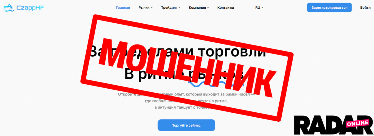Сегодня мы проанализируем услуги набирающего популярность на рынке форекс-брокера CzappHF. Брокер CzappHF обещает Быстрое и надежное исполнение, удобную торговую платформу, профессиональную поддержку, современные инструменты и аналитику, безопасную и регулируемую среду. Но прежде, чем доверить ей свои деньги, ознакомимся с обзором наших экспертов. Изучив сайт брокера CzappHF, они обнаружили здесь явные признаки мошенничества.
