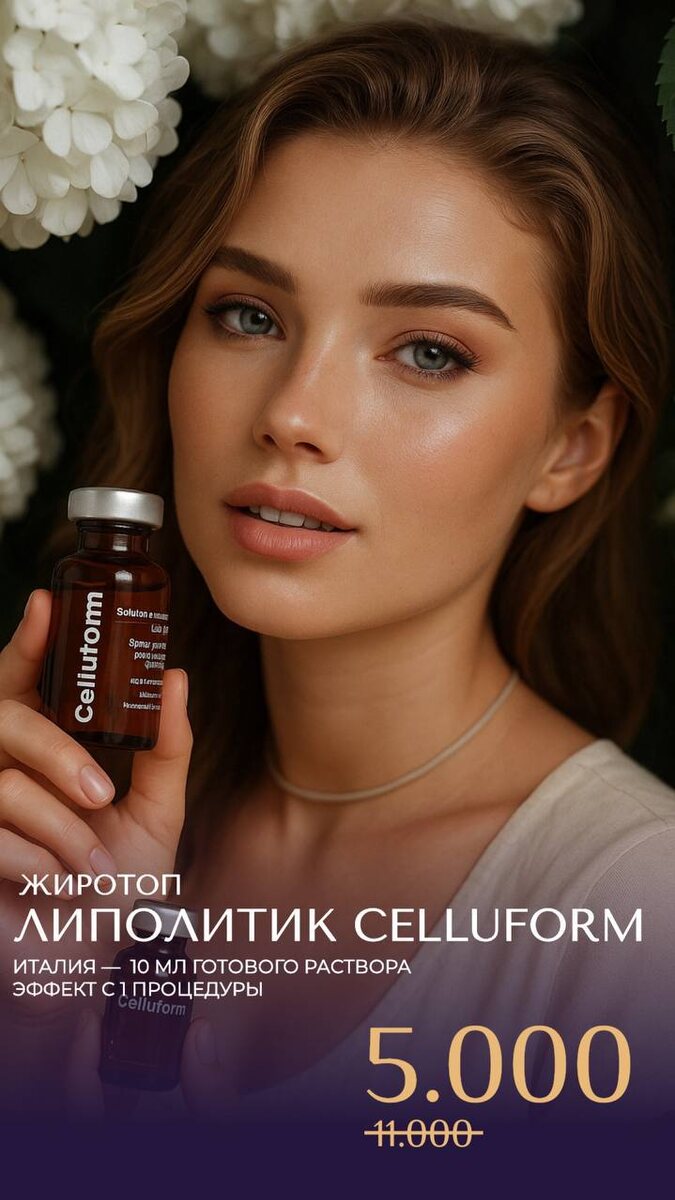 Это инновационная моделирующая программа ЖИРОТОП!!! 🔥 Жиротоп это авторская секретная методика , которая даёт полное расщепление жира в локальных жировых отложениях , обычно это область живота , галифе и внутренняя поверхность бёдер . Целлюформ – липолитик из Platinum Collection мезотерапевтических коктейлей, выпускаемых итальянской компанией Промоиталия. Препарат используется в инъекционной косметологии как средство для борьбы с целлюлитом, с жировыми отложениями на лице и теле, для подготовки к процедуре липосакции. Буквально растворяет жир🔥🔥🔥 Обьемы уменьшаются уже с первой процедуры, рекомендуемый курс от 3х сеансов, для длительного и стойкого эффекта 🔥 Любуетесь на себя в каждом зеркале 💝Что может быть лучше ?👌