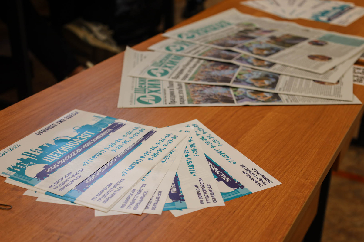 25 сентября у первокурсников Новомосковского института РХТУ им. Д. И.Менделеева, социального партнера компании в сфере подготовки кадров, состоялось знакомство со «Щекиноазотом» – ведущим предприятием химической промышленности региона. Представители химической компании, заместитель директора по управлению персоналом Татьяна Серебрякова, начальник отдела социального развития Александр Платонов, руководитель группы по развитию молодежной политики Елизавета Заломова и специалист по обучению персонала Управления корпоративного обучения и развития персонала Елена Махова побывали в вузе с презентацией компании в рамках программы долгосрочной мотивации. Программа «АЗОТ СТАРТ» рассчитана на взаимодействие «Щекиноазота» со студентами в течение всего периода обучения в вузе и включает в себя тренинги, кейс-турниры, викторины, научно-техническую конференцию для старших курсов, а также встречи на производстве – от ознакомительной однодневной практики для первого курса до производственной и преддип