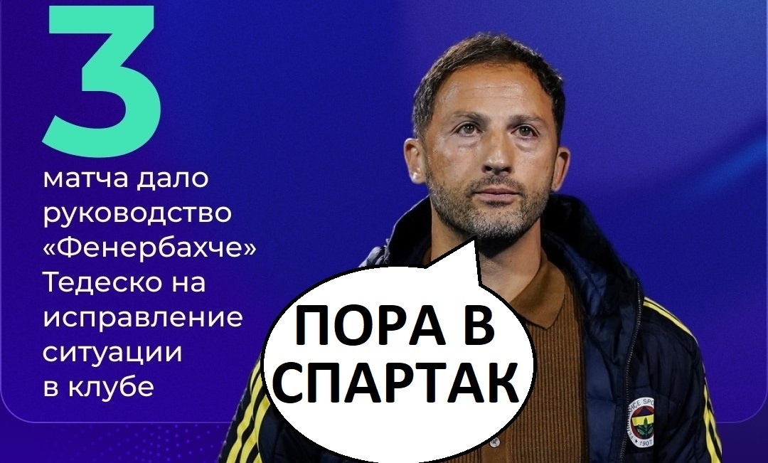 Продолжаем наш разговор о бывших наставниках московского "Спартака". Чья карьера после красно-белого клуба сложилась "очень по разному". Кого-то сейчас хотят пригласить в "Манчестер Юнайтед" (Эмери), кого-то увольняют после неудачного периода работы в Греции (Руй Витория). Ну, а один итало-немецкий наставник решил выделиться и пойти с опережением графика. По информации онлайн-издания Fotomac, "Фенербахче" УЖЕ собирается уволить Доменико Тедеско. Напомню, что экс-тренер "Спартака" возглавил клуб только в начале сентября Специалисту дали три матча на исправление сложившейся неблагоприятной ситуации. В четырёх матчах под руководством Тедеско "Фенербахче" одержал лишь одну победу, а после поражения от загребского "Динамо" (1:3) в Лиге Европы совет директоров турецкого клуба провёл внеочередное заседание. По данным источника, перед Доменико поставили ультиматум: либо команда выигрывает следующие три матча, либо он будет уволен. До октябрьской международной паузы "Фенербахче" сыграет с "Ант