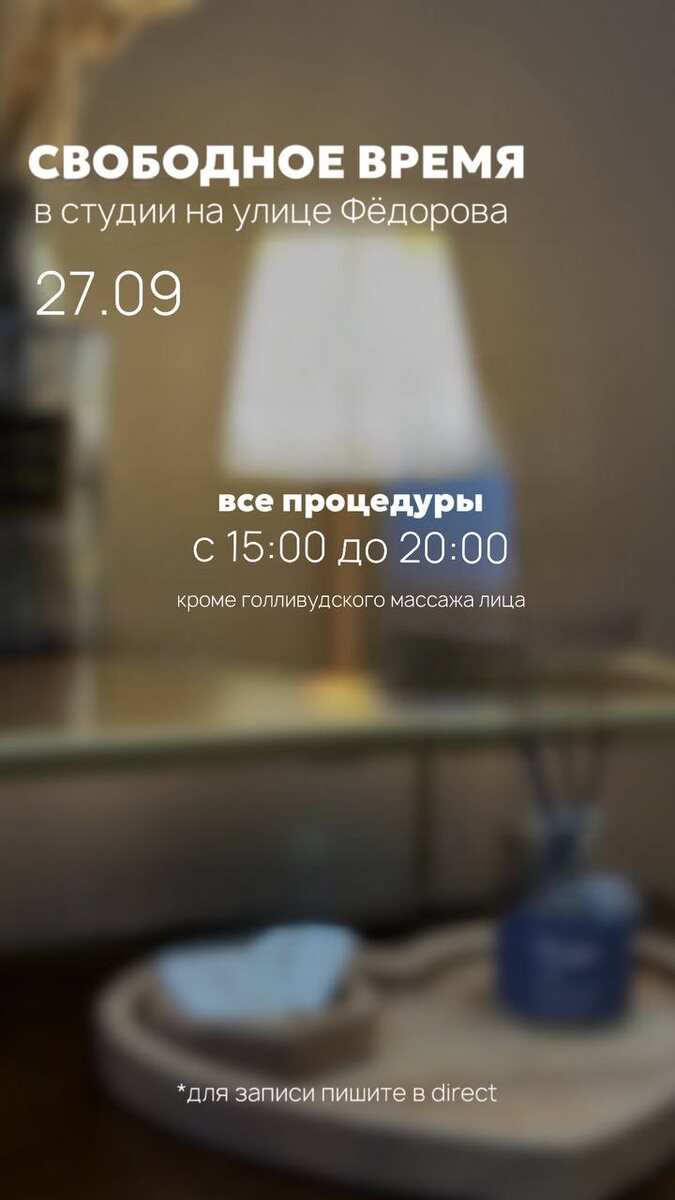 СВОБОДНОЕ ВРЕМЯ НА ФЁДОРОВА 27.09 • ONLINE запись • WHATSAPP Ждём вас к нам на процедуры 🤍