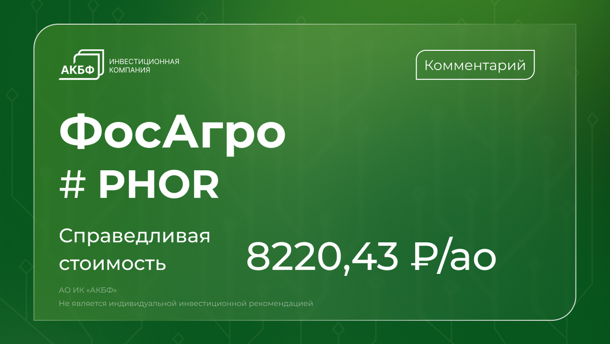 Оценка справедливой стоимости ПАО «ФосАгро» после пересмотра повышена: теперь она составляет 8220,43 руб./ао против 7680,74 руб./ао ранее. Это предполагает потенциал среднесрочного роста в 7% и рекомендацию «держать». Оценка учитывает сравнительно низкий для бумаг в нашем покрытии 10%-й дисконт — поправку на риски вложений.