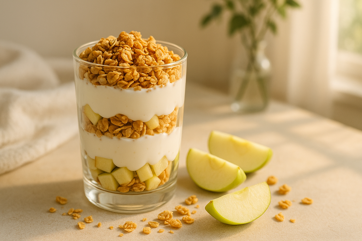 Освежающий завтрак: йогурт с гранолой и яблоком за 5 минут
