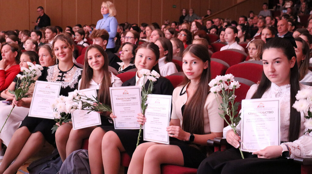 Сегодня, 26 сентября, 250 молодых людей из Брянска, стали обладателями именных стипендий. 17-я церемония прошла в детской школе искусств №1 имени Т.П. Николаевой, сообщает пресс-служба мэрии. Именное денежное поощрение от городских властей получают лауреаты в трёх номинациях: «Образование» — 200 человек, «Культура» — 45 и «Общественные молодёжные объединения» — 5. Традиционно много победителей из флагманских учреждений образования областного центра — лицеев №1 имени А.С. Пушкина, №2 имени М.В. Ломоносова, №27 имени Героя Советского Союза И.Е. Кустова, а также семи гимназий областного центра. В общей сложности они воспитали 95 стипендиатов — почти половина от общего количества в номинации «Образование». Лауреатов поздравили и.о. заместителя главы Брянской городской администрации Дмитрий Навроцкий, депутат горсовета Василий Игрунёв, заместитель начальника городского управления образования Надежда Соколовская, начальник городского управления культуры Эдуард Амелькин. Иван Чупин — победите