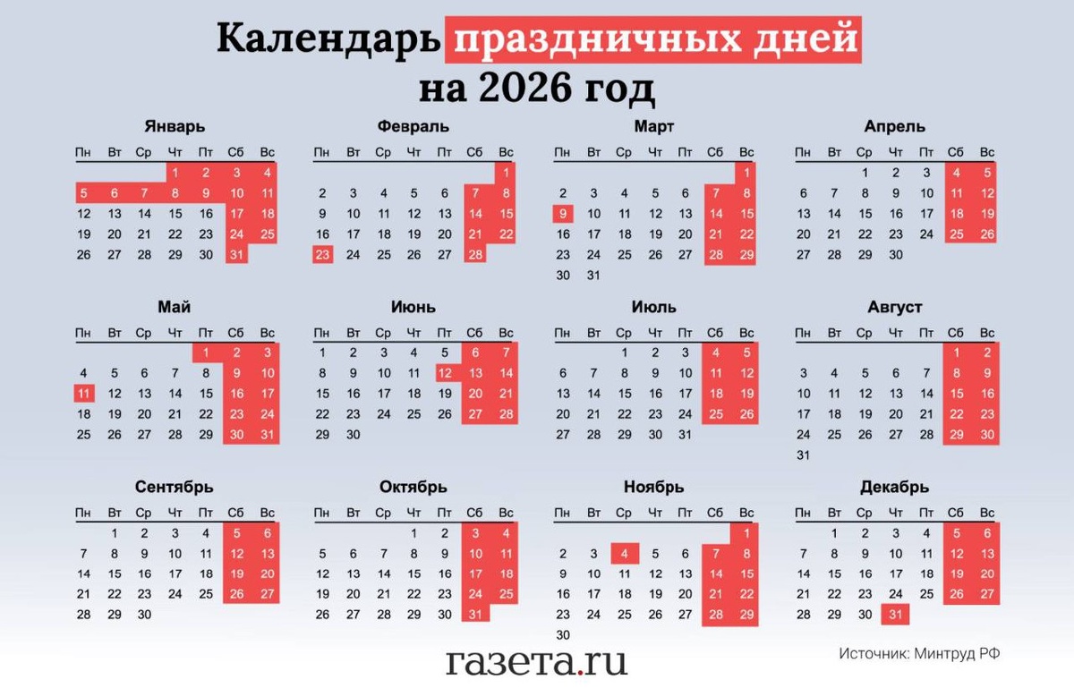 ВЫХОДНЫЕ 2025 📅 Глава правительства Михаил Мишустин подписал постановление о переносе выходных дней в 2026 г. Информация представлена на сайте кабинета министров. 📅 В 2026 г. 3 и 4 января выпадают на субботу и воскресенье. Так как это нерабочие праздничные дни, их перенесли на пятницу, 9 января, и четверг, 31 декабря, соответственно. 📅 Календарь праздничных и выходных дней на 2026 г. выглядит следующим образом: ✈️с 31 декабря 2025 г. по 11 января 2026 г. (12 дней); ✈️ с 21 по 23 февраля (3 дня); ✈️ с 7 по 9 марта (3 дня); ✈️ с 1 по 3 мая и с 9 по 11 мая (по 3 дня); ✈️ с 12 по 14 июня (3 дня); ✈️ 4 ноября; ✈️ 31 декабря. 💬 Для консультации ЖМИ СЮДА 📱@VintageTravelSpb 📱+7 (911) 921-11-42