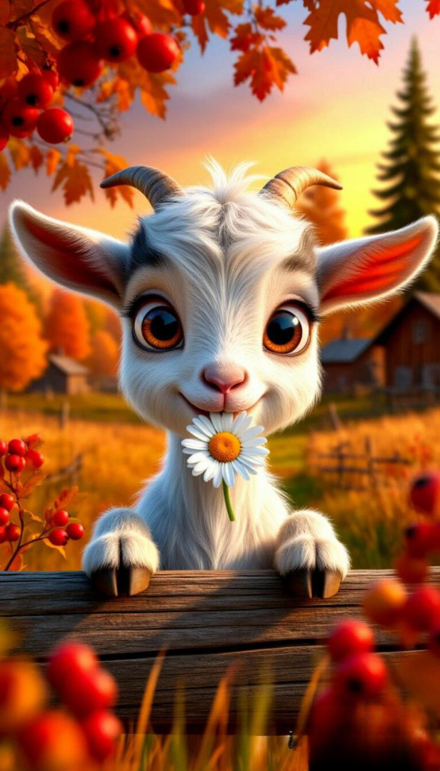 В самый час золотого заката, когда солнце превращало мир в расплавленное золото, к изгороди подошёл козлёнок по имени Тимон. Он был мал даже для козлёнка, совсем чиби-бейби, а его глаза были огромными, как озёра, обрамлёнными длинными-предлинными ресничками. Этими глазами он смотрел на мир с безмерным удивлением.