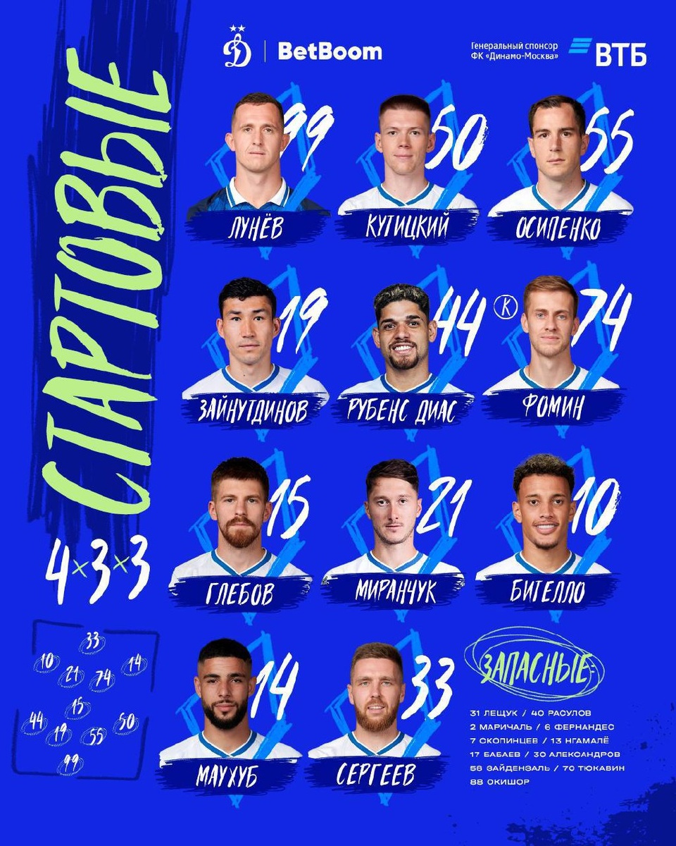 Снова выезд, будет ли вторая победа? Ознакамливаемся с составами #КСДинамо Справа Кутицкий, в воротах снова не Расулов, а Лунев. Осипенко, а не Маричаль – в остальном без изменений. У соперников Лепский! Главный арбитр – Виталий Мешков. Судья на ВАР – Василий Казарцев Прямая трансляция в 18:00 на Матя Премьер. Вперед, Динамо. Побеждать! ⚽️ Подписывайтесь на БуДсу