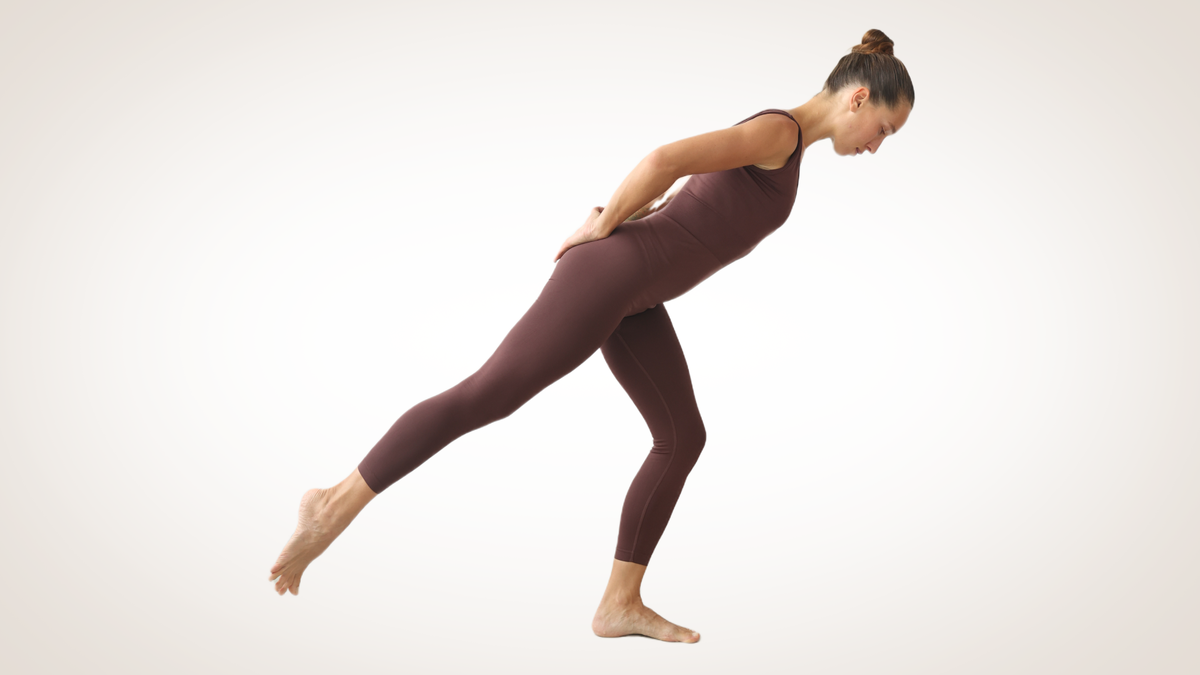 - Вес тела распределяйте через опорную ногу, руки для баланса.