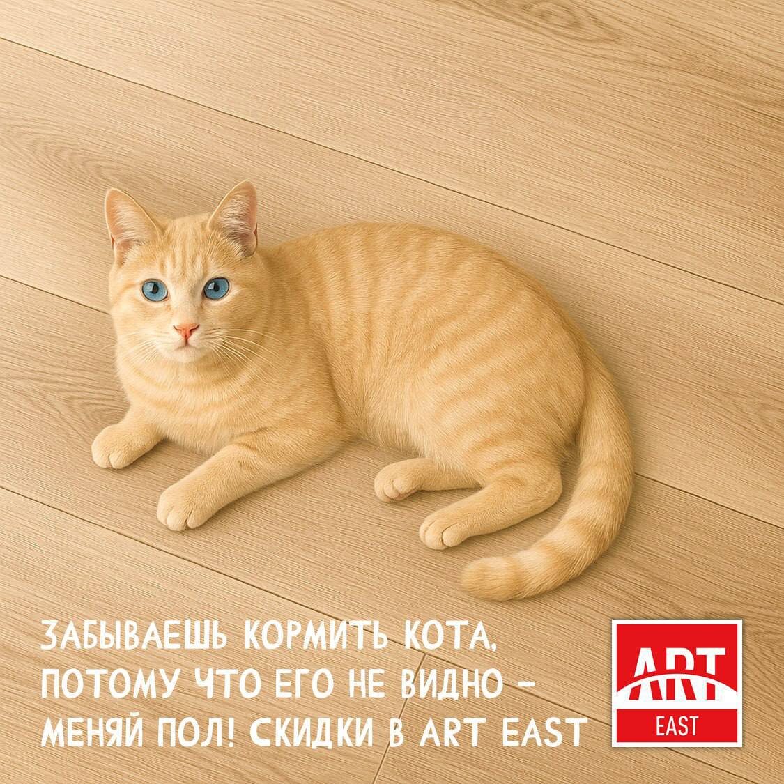 Меняй пол, спасай кота! 😻 Скидки на все напольные покрытия ART EAST! 🛍🛍🛍 Пока ваш кот сливается с старым полом, вы можете выбрать для него новый, стильный и контрастный фон ➡️ Выберите свой вариант в вашем городе 🛍️ ГДЕ КУПИТЬ 📌