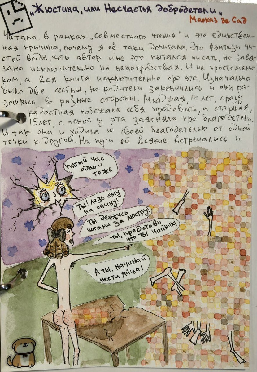 Читала в рамках «совместного чтения» и это единственная причина, почему я её таки дочитала. Это фэнтези чистой воды, хоть автор и не это пытался писать, но завязана исключительно на непотребствах. И не просто мельком, а вся книга исключительно про это. Изначально было две сестры, но родители закончились и они разошлись в разные стороны. Младшая, 14 лет, сразу радостная побежала себя продавать, а старшая, 15 лет, с пеной у рта заясняла про благодетель. И так она и ходила со своей благодетелью от одной точки к другой. На пути ей всякие встречались и бандиты, и дядька, и монахи и кого там только не было… И все её хотели. Она конечно же всех поучала благодетели и целомудрию, но всё равно всем подчинялась и выполняла разные акробатические этюды. В конце, вся потрёпанная жизнью, но оставшаяся при своём мнении, она находит сестру и вот затравочка на 2 книгу (которая реально есть, но читать это я не буду). Конец. Это прям мрак. Книга скучнейшая, и не смотря на разные формы «бутербродов» очень