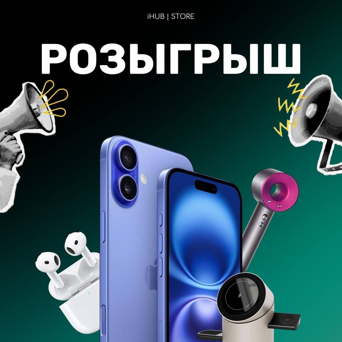 РОЗЫГРЫШ iPhone 16 от iHub Store Новый Уренгой и Ноябрьск празднуют юбилей, а мы открытие филиала! И это значит — подарки для вас 🎁 Что можно выиграть: 📱 iPhone 16 🎧 AirPods 💨 Фен Supersonic HD08 ⚡️ Зарядная станция от бренда VLP 💳 Сертификат на покупки 👉 Условия – ну очень простые: 1. Подписаться на iHub Store в Telegram: https://t.me/ihub_store 2. Подписаться на iHub Store в VK: https://vk.com/ihub_store ✨ Подписка на обе соцсети = 2 шанса вместо одного ⚠ Окончание розыгрыша 30 сентября