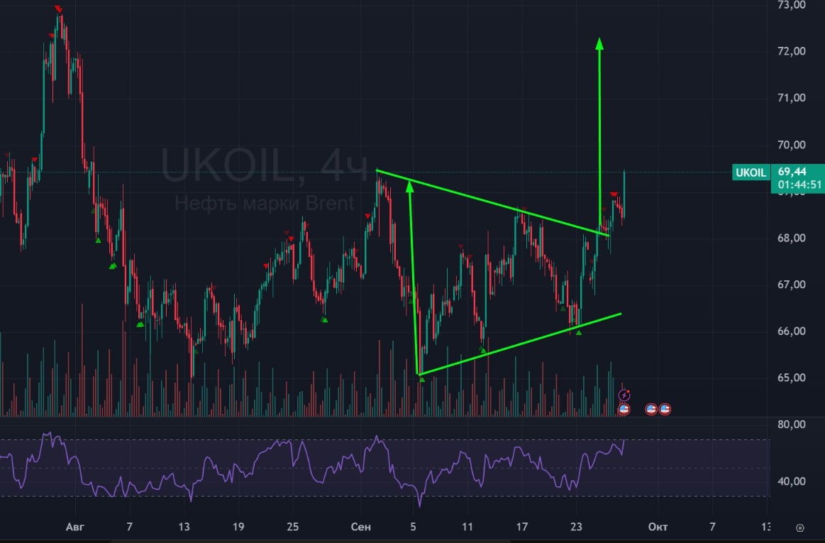 🟢Нефть летит вверх после выхода из накопления. Рост нефти - позитив для нашего рынка, но он всё еще скован страхами и торгуется у 2700 при позитивном внешнем фоне.