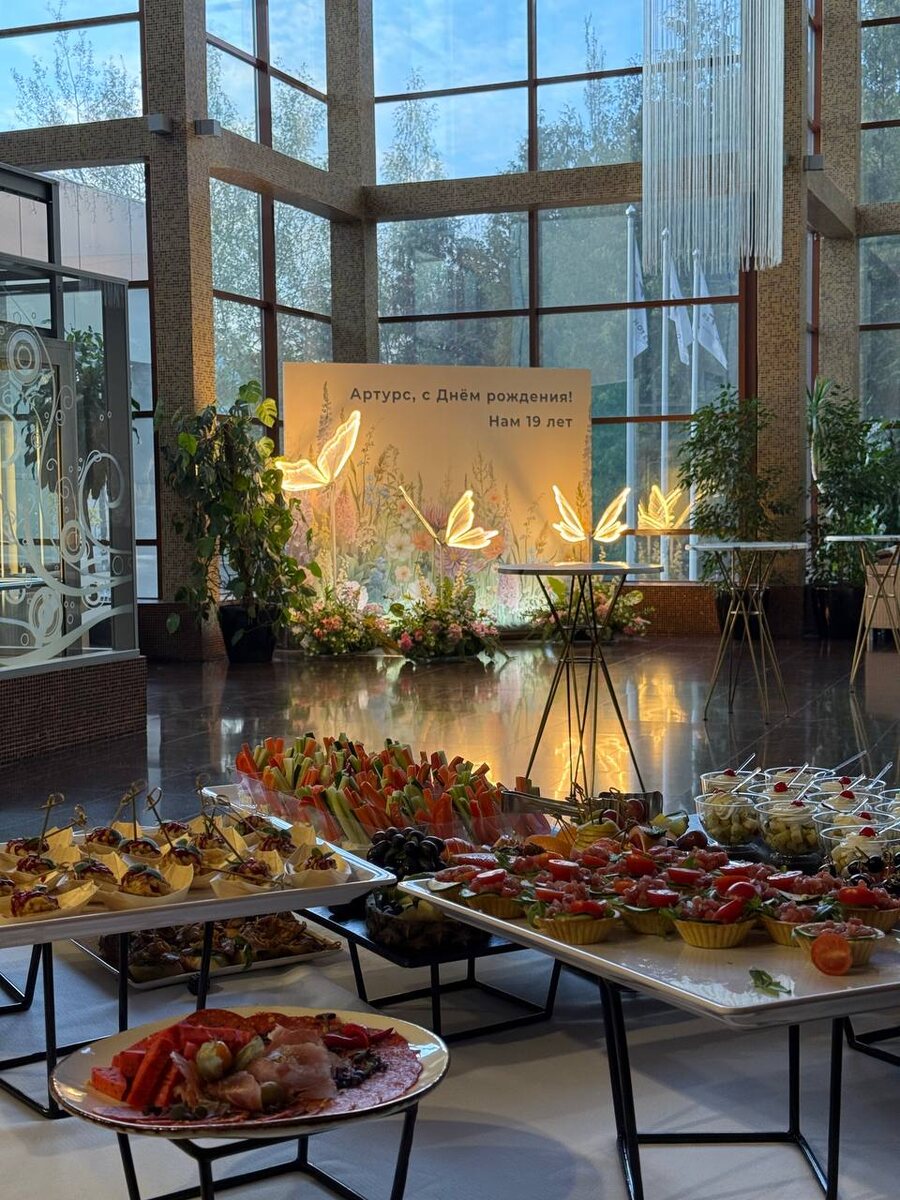 Гости уже наслаждаются фуршетом, уютной атмосферой и делают фото в сияющих фотозонах 🦋