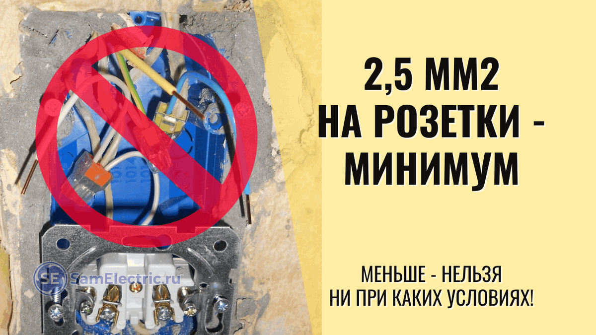 Но факт остается фактом: в России с 26 октября 2019 года минимальное сечение токопроводящей жилы для подключения розеток - 2,5 мм2.