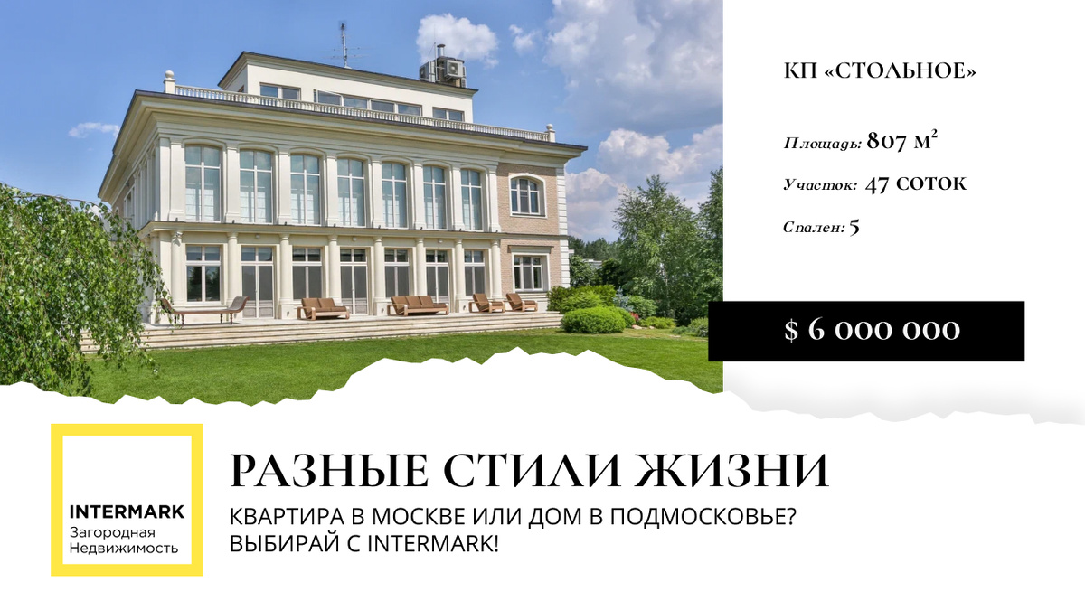 Выбирайте пространство, где каждая деталь говорит о вашем безупречном вкусе. Особняк в КП Стольное, Минское шоссе - Итальянская эстетика: дом с интерьерами от ведущих дизайнеров Италии — каждая комната — произведение искусства в современном стиле - Уникальный интерьер: пять великолепных спален, где каждая деталь продумана до мелочей, а виды из окон создают неповторимую атмосферу - Место для побед — великолепный участок с профессиональным кортом, где реализованы все ваши мечты об идеальном пространстве Квартира в ЖК Посольский Дом - Архитектурное совершенство: квартира с уникальным планировочным решением от известного архитектурного бюро - Игра света: панорамные окна от пола создают неповторимый световой эффект, превращая пространство в произведение искусства - Дизайнерский шик: эксклюзивный ремонт, каждая деталь отражает современный стиль и безупречный вкус Что ближе вашему сердцу: загородная резиденция с итальянским шармом или городская квартира с видом на столичные пейзажи? СМОТРИТЕ
