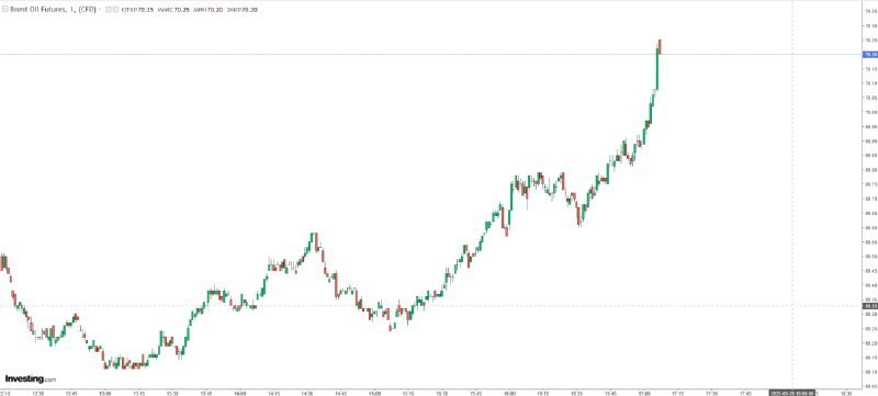 Цена нефть Brent впервые с 1 августа превысила отметку $70 за баррель