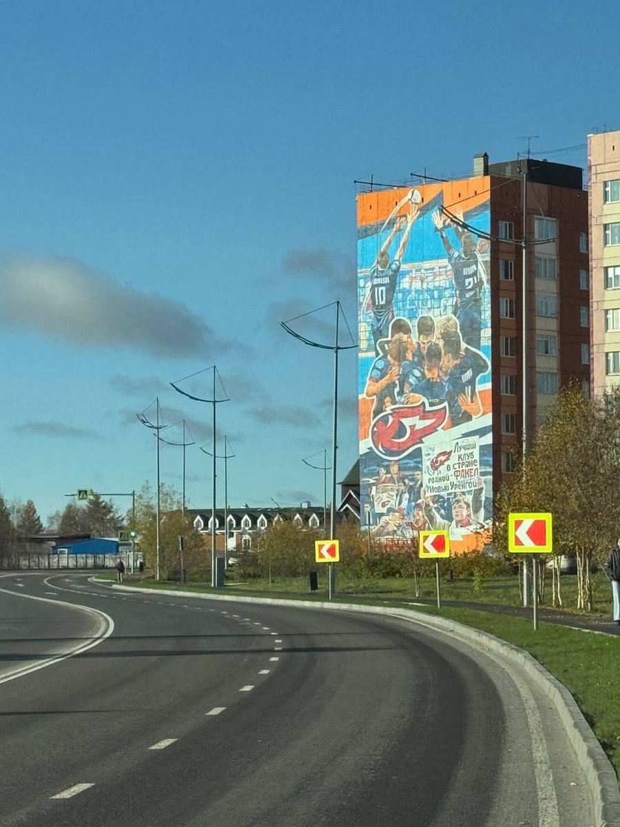 В Новом Уренгое появился свежий мурал. Посвящён волейболистам из «Факела».