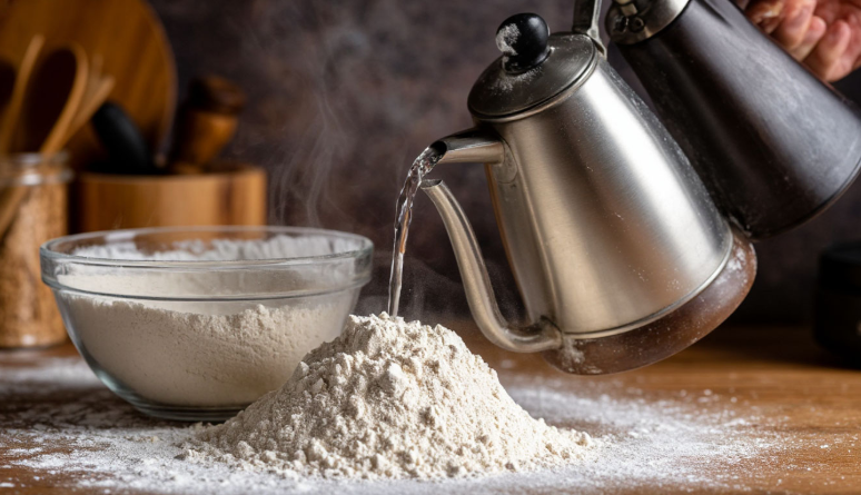 Когда вы вливаете крутой кипяток в муку, происходит ключевая реакция — клейстеризация крахмала. Звучит сложно, но на деле все просто.