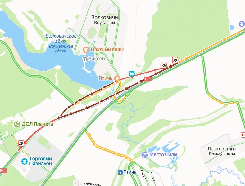 🔸Огромная пробка образовалась на трассе P-1 на выезде из Минска в направлении Бреста