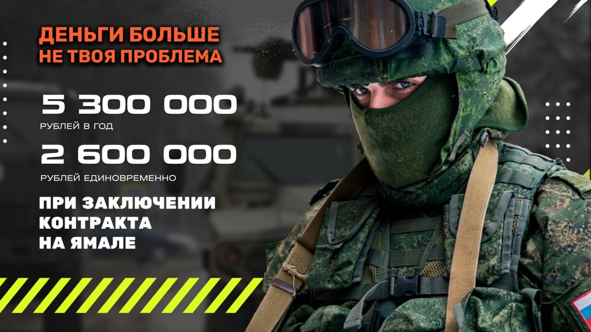 Ямальцев приглашают на службу по контракту ✔️ Лучшие условия в стране ✔️ Годовой доход 5,3 млн рублей. ✔️ Единовременная выплата 2,6 млн рублей при заключении контракта. ✔️ Льготы и гарантии для всей семьи. Подробности на сайте: contract89.ru