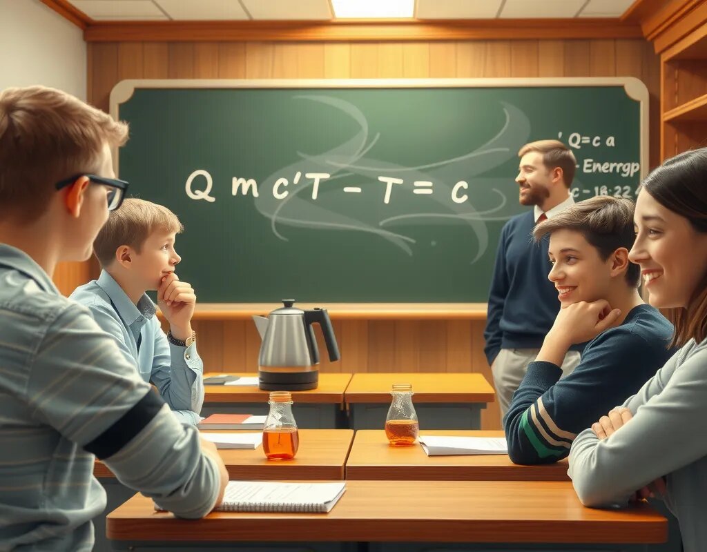 ✔ Наш Telegram-канал с новостями, подписывайтесь: 👉 Учись Легко Количество теплоты – это энергия, которая передается телу при нагревании или охлаждении. Звучит сложно? Представьте чайник с водой. Когда вы включаете плиту, вода нагревается – это и есть передача тепла. На уроках физики нам важно уметь рассчитать, сколько энергии потребовалось для этого процесса. Для школьников 8 класса формула проста: Q = m * c * ΔT Где: Многие считают, что физика – это скучно. На самом деле, всё зависит от подхода. Сначала разберём пример: Допустим, у нас есть 2 кг воды, которая нагревается с 20°C до 80°C. Удельна