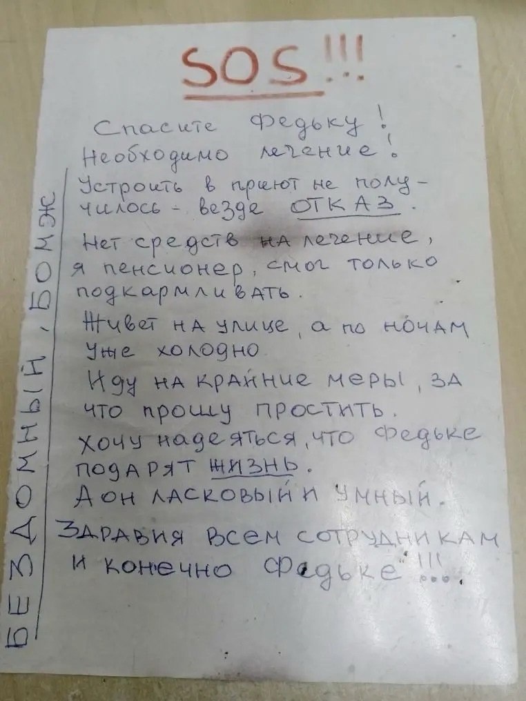 Кота Фёдора подбросили в клинику, при нём была лишь записка с просьбой о помощи.
