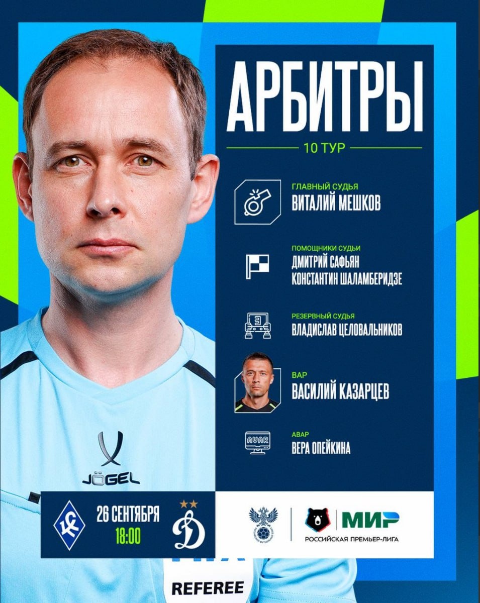 Крылья Советов-Динамо М 2-3 ❌14 мин. Ошибочно не назначил штрафной удар из убойной зоны и не показал ж.к игроку №44 команды Динамо (грубая игра) - 0,1 балл ❌ 82 мин. Ошибочно показал ж.к игроку №22 команды Крылья Советов посчитав что было попадание по лицу рукой, ладонью - 0,1 балл Оценка: 8,2