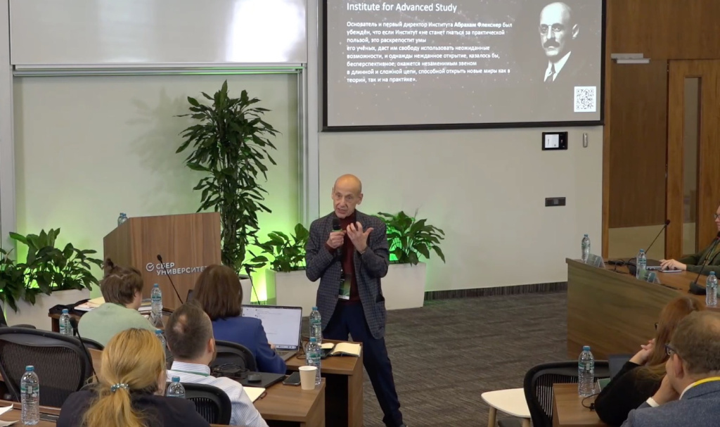 Александр Асмолов посвятил свой доклад принципу «полезности бесполезного». Этот принцип был представлен как ключевой ценностный ориентир для бизнеса и образования в эпоху искусственного интеллекта.