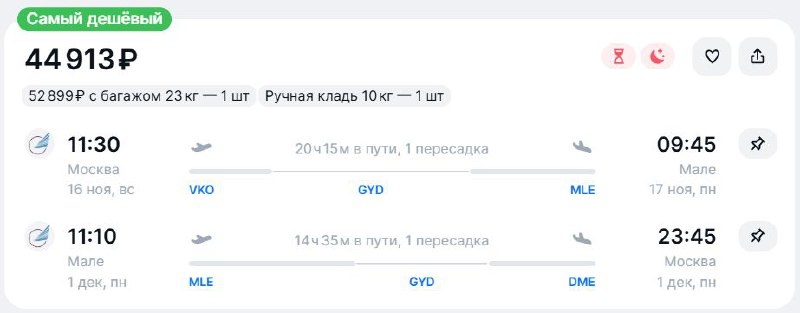 AZAL предлагает сравнительно недорогие билеты на Мальдивы на ноябрь-декабрь. Слетать на острова из Москвы или Петербурга можно за 45 тыс. руб. Для уральских туристов доступны варианты за 41,8 тыс. руб. Минимальный тариф включает только ручную кладь весом до 10 кг. Однако путешественникам стоит учитывать, что в пути придется сделать остановку в Баку, причем довольно продолжительную. Подробнее написали на ТурДоме. @tourdom