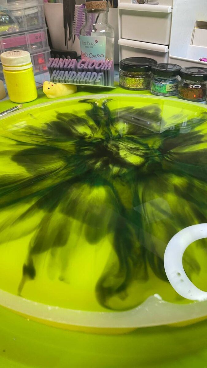 Какая же это магия 🤪✨ Вторая менажница в чёрно-салатовом для мужчины готова 😍✨ ждём результат 🤪 а он не предсказуем, так как рисунок ещё формируется ✨✨✨ #менажница #эпоксиднаясмола #эпоксидка #ручнаяработа