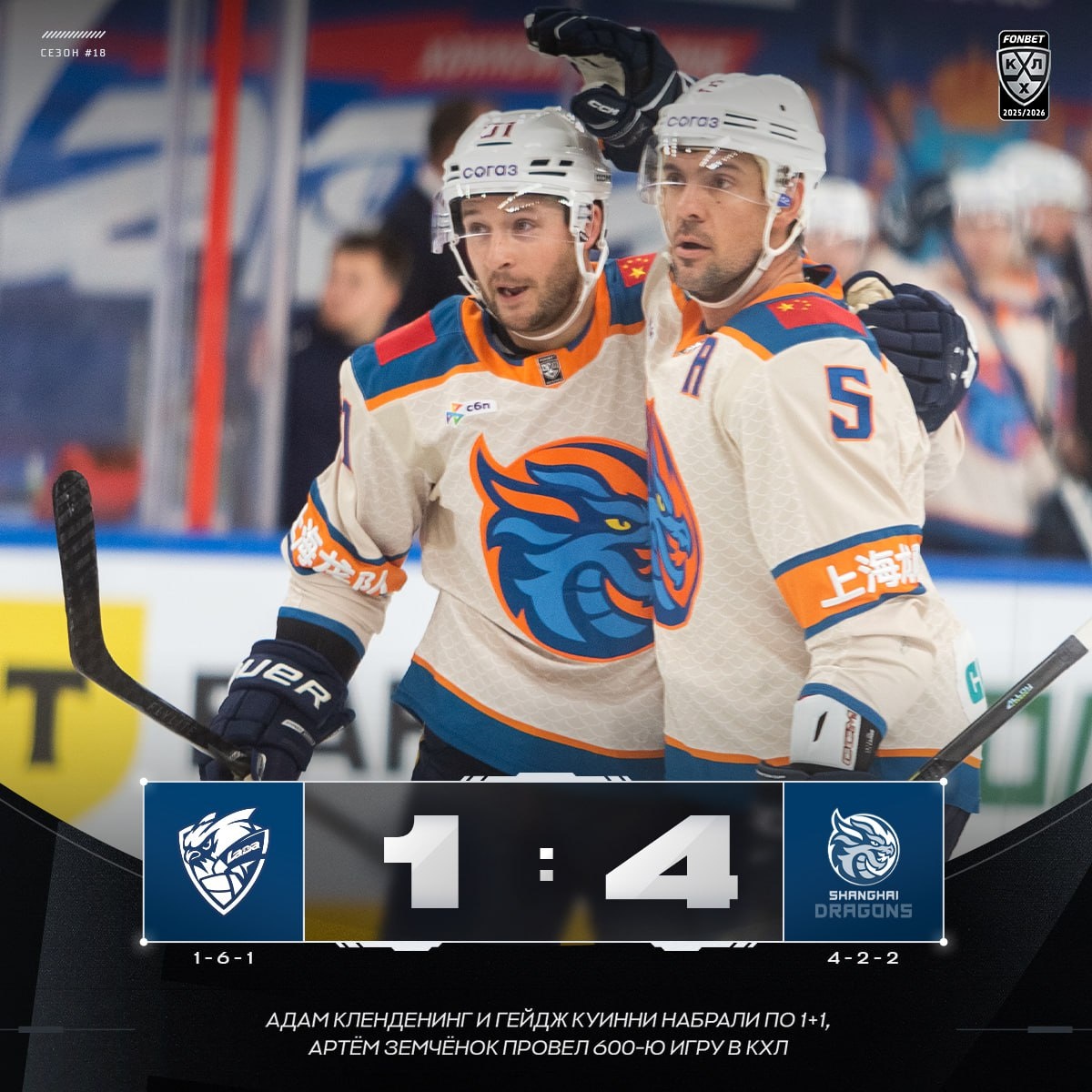 🐉 «Драконы» улетают из Тольятти с победой! #ФонбетКХЛ