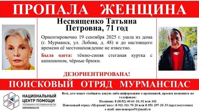 ❗️В Мурманске ищут пожилую северянку с дезориентацией