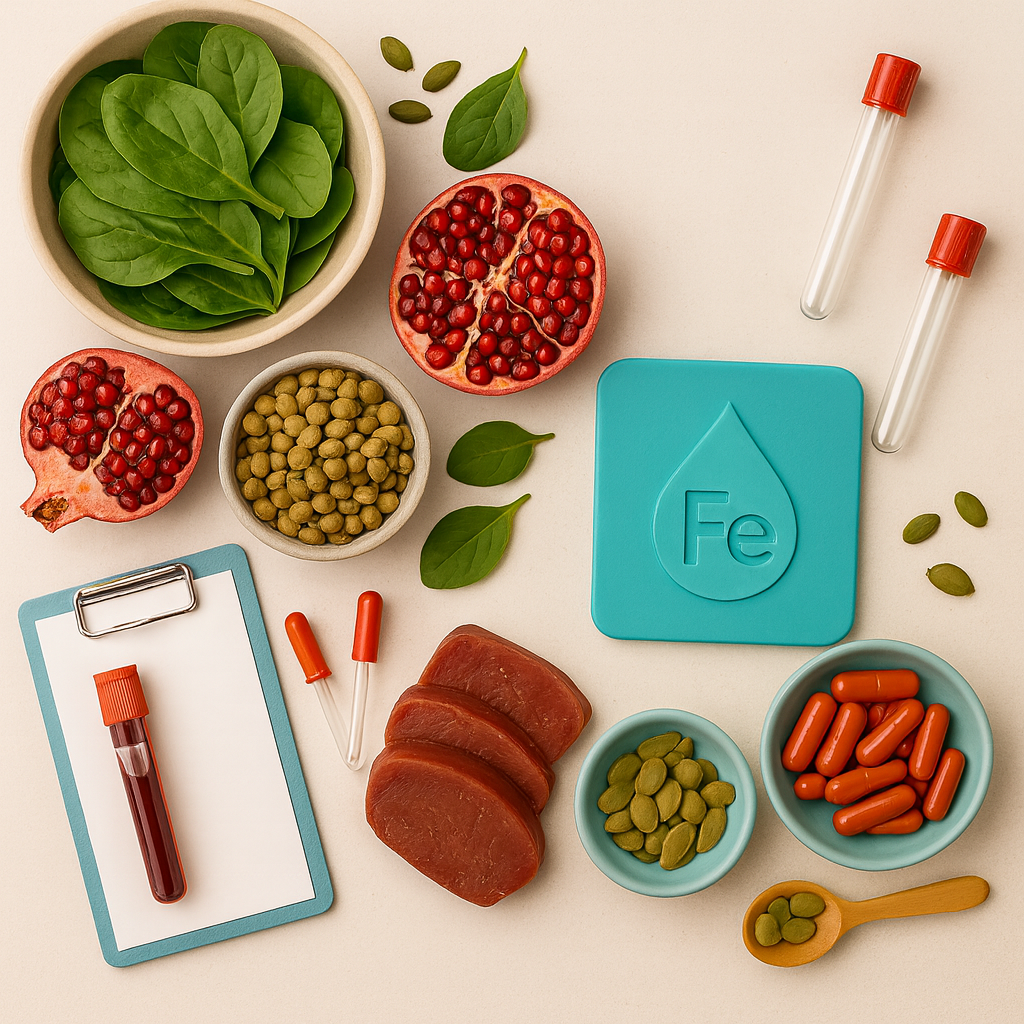 ▫️Негемовое (усваивается хуже, но тоже важно): бобовые, шпинат, гречка, овсянка, орехи, тыквенные семечки, сухофрукты. 💡 Совет: витамин С (цитрусовые, болгарский перец) помогает усвоению железа, а кофе/чай-наоборот, мешают.