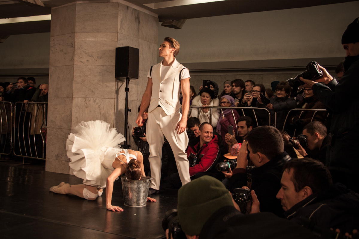 В рамках Ночи искусств прямо посреди станции Полянка положили сено, разместили оркестрик. Мимо мчались поезда, к зрителям присоединялись ошарашенные случайные прохожие. Меня тоже взволновала роль хореографа с хлыстом и сравнение танцовщиков с беговыми лошадьми. Такое печальное, такое трогательное! В одной из сцен дрессировщик и сам падает без сил, и прима обтирает его мокрой губкой.